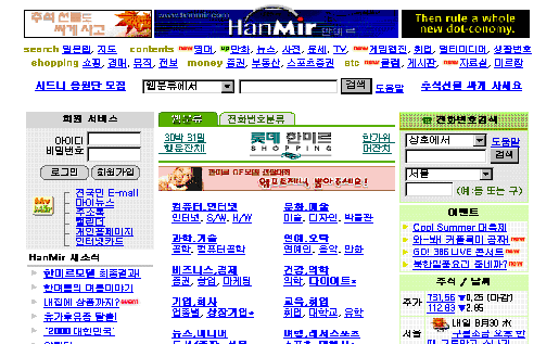 ¨ê Çѹ̸£(http://www.hanmir.com) Çѱ¹Åë½Å ¸ÖƼ¹Ìµð¾î¿¬±¸¼Ò¿¡¼ Á¦ÀÛÇÑ °Ë»ö¿£ÁøÀ¸·Î 1996³â¿¡ ¼ºñ½º¸¦ ½ÃÀÛÇßÀ¸¸ç ÀϺ»¾î °Ë»öÀÌ °¡´ÉÇÑ ¿£ÁøÀ¸·Î À¯¸íÇÏ´Ù. ¶ÇÇÑ ´º½º±×·ì °Ë»ö°ú ¸ÖƼ¹Ìµð¾î °Ë»öÀÌ °¡´ÉÇÏ°í ´º½º °Ë»ö, ±âµ¶Á¤º¸Å½Á¤µµ ÀÖ´Ù. ±¹³»¿¡¼´Â µå¹°°Ô ´ë¼Ò¹®ÀÚ¸¦ ±¸ºÐÇÏ¿© °Ë»öÀ» Çϰí Àç°Ë»öµµ °¡´ÉÇÏ´Ù.