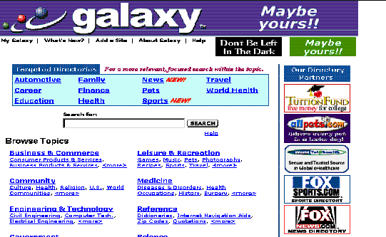 ¨è Galaxy(http://www.einet.net) America's Health Network°¡ Á¦°øÇÏ´Â Á¤º¸¼¼°è¿¡ °üÇÑ Àü¹®Àû °¡À̵å·Î¼ ±âº» À¥ °Ë»ö°ú ´õ ¸¹Àº ¿É¼ÇÀ» À§ÇÏ¿© ½ÉȰ˻öÀ» ÇÒ ¼ö ÀÖ´Â °Ë»ö¿£ÁøÀÌ´Ù. 10°³ÀÇ ´ëºÐ·ù¿Í ±×¿¡ µû¸¥ ¼ÒÁÖÁ¦¸¦ ÇÑ È¸é¿¡¼ Á¦°øÇϰí ÀÖ¾î ¿øÇÏ´Â Á¤º¸¸¦ ºü¸£°Ô ãÀ» ¼ö ÀÖ´Ù. À¥ °Ë»ö, °íÆÛ °Ë»ö, ÅÚ³Ý °Ë»ö µîÀ» Á¦°øÇÏ°í °Ë»ö ¹æ¹ýÀº ÁÖÁ¦º° ¹æ½Ä°ú Ű¿öµå ¹æ½ÄÀ» ¸ðµÎ Áö¿øÇÑ´Ù.