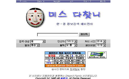¨ç ¹Ì½º´Ùã´Ï(http://www.mochanni.com) 1996³â Çѱ¹°úÇбâ¼ú¿ø ½ÂÇö¼®ÀÌ ¿¬±¸¿ëÀ¸·Î °³¹ßÇÑ Á¤º¸°Ë»ö ¿¡ÀÌÀüÆ®·Î, ¿ì¸® ³ª¶ó¿¡¼ °¡Àå Àß ¾Ë·ÁÁø ¸ÞŸ °Ë»ö¿£ÁøÀ̶ó°í ÇÒ ¼ö ÀÖ´Ù. ´Ù¸¥ °Ë»ö¿£Áøµéó·³ ·Îº¿À» µ¹·Á »öÀÎ µ¥ÀÌÅͺ£À̽º¸¦ ±¸ÃàÇÏÁö ¾ÊÀ¸¹Ç·Î ÀÚüÀûÀÎ µ¥ÀÌÅͺ£À̽º°¡ ¾ø´Â ´ë½Å ÀÌµé °Ë»ö¿£Áø¿¡ Á¢¼ÓÇÏ¿© »ç¿ëÀÚ°¡ ã°íÀÚ ÇÏ´Â Á¤º¸¸¦ °Ë»öÇØÁØ´Ù.