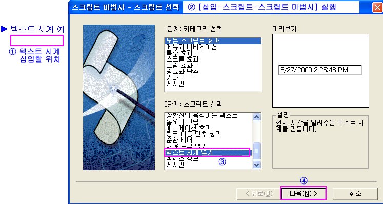 ¨ç ½ºÅ©¸³Æ® ¸¶¹ý»ç¸¦ ½ÇÇàÇÑ ´ÙÀ½ ¸ñ·Ï¿¡¼ [ÅØ½ºÆ® ½Ã°è ³Ö±â]¸¦ ¼±ÅÃÇÑ´Ù.