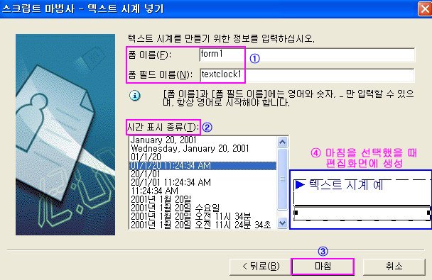 ¨è Æû À̸§°ú Æû Çʵå À̸§À» ÀÔ·ÂÇÑ´Ù. ¿©·¯ °³ÀÇ ÆûÀ» »ç¿ëÇÏÁö ¾ÊÀ» °æ¿ì¿¡´Â µðÆúÆ®°ªÀ» »ç¿ëÇØµµ ¹«¹æÇÏ´Ù. ¨é ½Ã°£Ç¥½Ã Á¾·ù¸¦ ¼±ÅÃÇÑ ´ÙÀ½ ¸¶Ä§ ´ÜÃ߸¦ Ŭ¸¯ÇÑ´Ù.